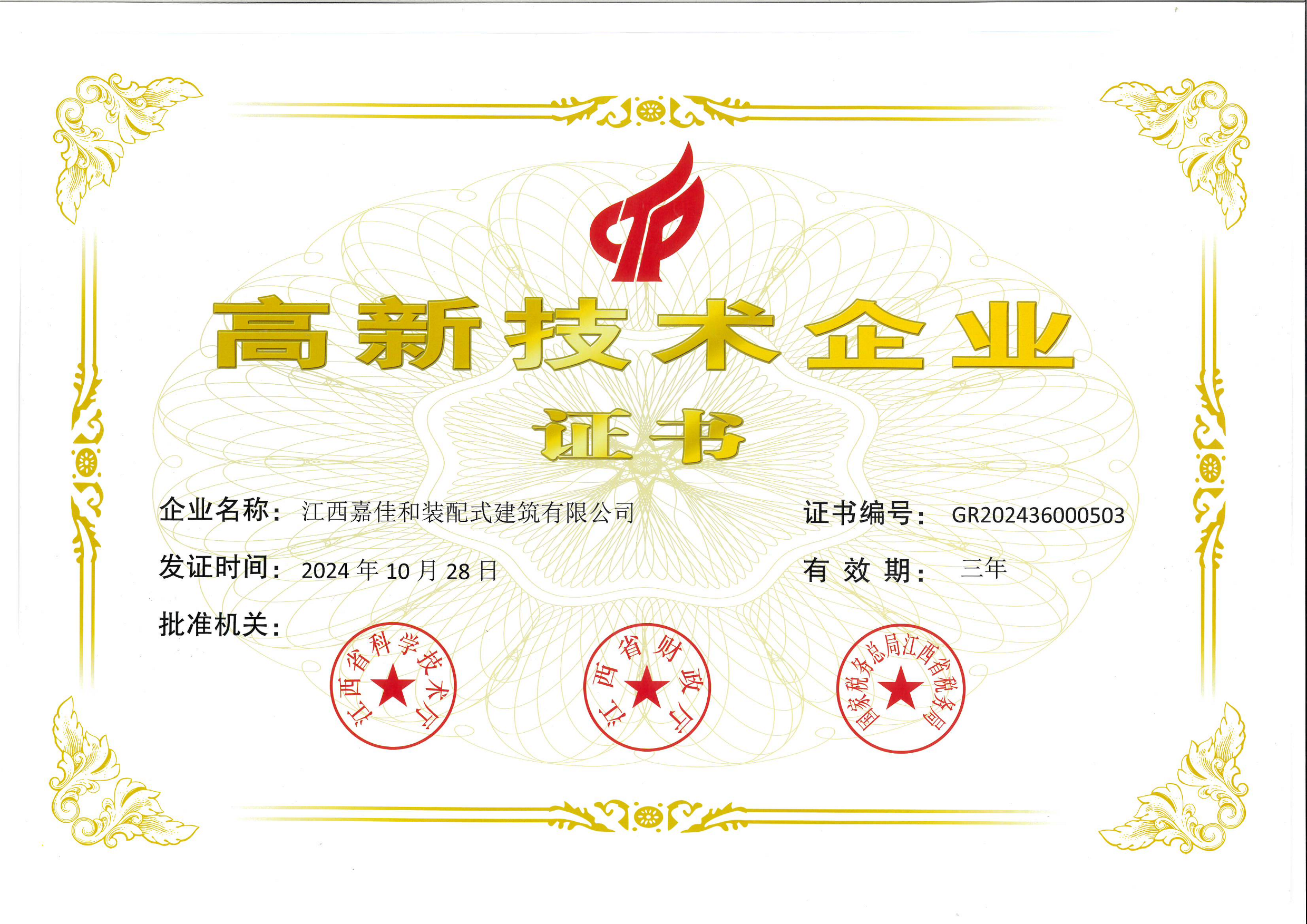高新技術(shù)企業(yè)證書(shū)